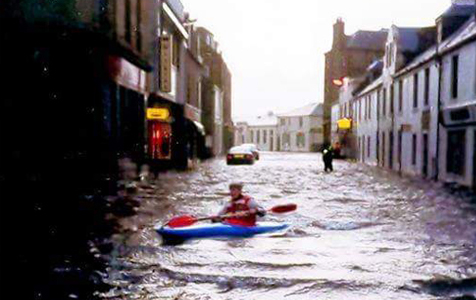 During the storm Charlie Lyle collected customers from Robert F Duff with his yacht's dinghy and rowed then across a flooded Bath Street to the front of the Clachan. Prior to the new Largs Prom flood defences being built the Waterside, along with most of Bath Street, were flooded regularly during storms. The pub having a back door leading directly to the prom did not help matters. Before the Clachan the pub was called the Suez Canal. Its bar was shaped like the bow of a ship so never looked out of place during a pub flood.